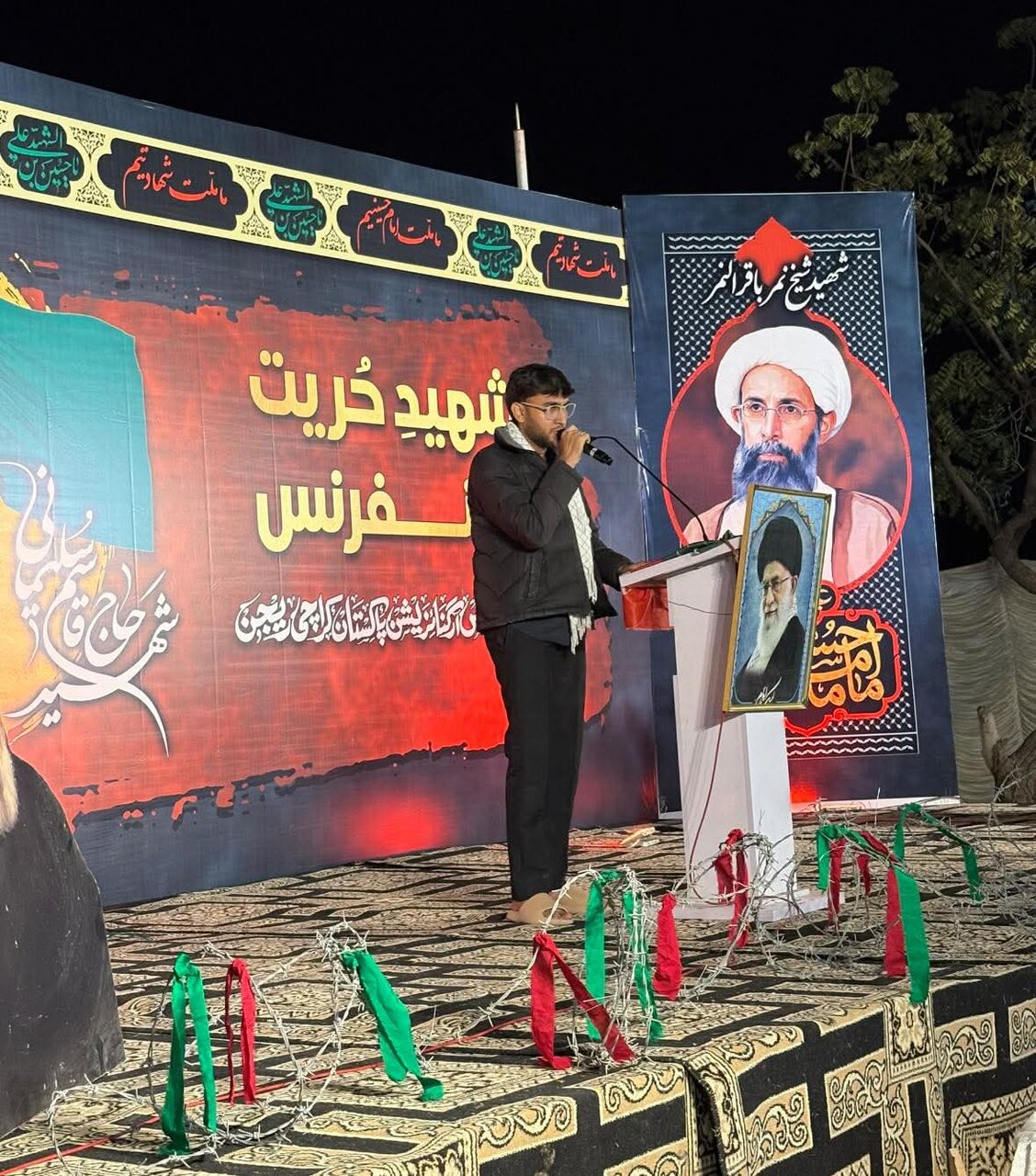 جعفریہ الائنس پاکستان کے نائب صدر علامہ باقر حسین زیدی نے خطاب کرتے ہوئے کہا کہ شہداء کی یہ لازوال قربانیاں تاریخِ اسلام کے عظیم سلسلے کی کڑی ہیں، جو کربلا سے جا ملتی ہیں، شہید باقر النمر کی مظلومانہ شہادت نے عرب سرزمین پر حق و انصاف کی آواز بلند کی اور استحصالی طاقتوں کے خلاف ایک زندہ تحریک کی بنیاد رکھی۔