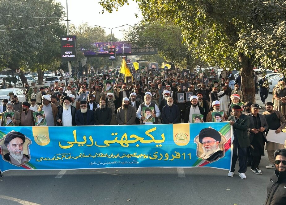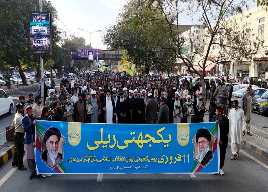 حوزہ نیوز ایجنسی کی رپورٹ کے مطابق، انقلابِ اسلامی ایران کی 47ویں سالگرہ کے موقع پر تحریکِ بیداریِ اُمتِ مصطفیٰ کے زیرِ اہتمام پاکستان کے مختلف شہروں میں ریلیوں اور اجتماعات کا انعقاد کیا گیا۔ لاہور، اسلام آباد، پشاور، سیالکوٹ، فیصل آباد، ملتان، کراچی، کوئٹہ اور گلگت بلتستان سمیت ملک کے چھوٹے بڑے شہروں میں ریلیاں نکالی گئیں۔ لاہور میں مرکزی ریلی مسجدِ شہداء سے پنجاب اسمبلی تک نکالی گئی، جس کی قیادت علامہ سید جواد نقوی نے کی۔ ریلی میں ہزاروں مرد، خواتین اور بچوں نے شرکت کی اور رہبرِ انقلاب اسلامی آیت اللہ العظمیٰ سید علی خامنہ ای، انقلابِ اسلامی اور اسلامی جمہوریہ ایران کے ساتھ اظہارِ یکجہتی کرتے ہوئے امریکہ اور اسرائیل کے خلاف نعرے لگائے۔