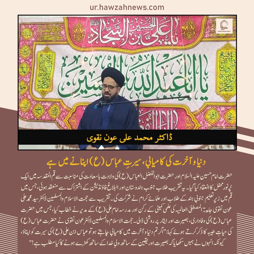 دنیا و آخرت کی کامیابی، سیرتِ عباس (ع) اپنانے میں ہے، ڈاکٹر محمد علی عون نقوی