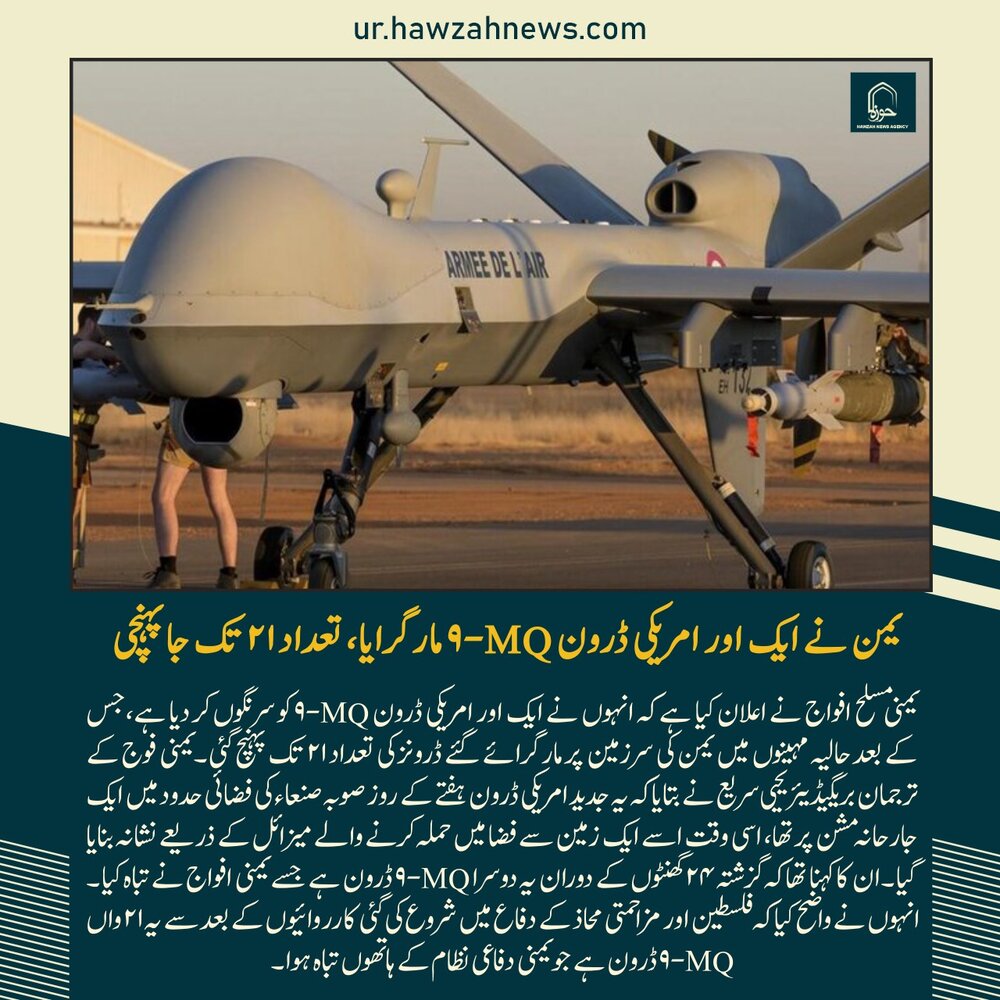 یمن نے ایک اور امریکی ڈرون MQ-9 مار گرایا، تعداد 21 تک جا پہنچی