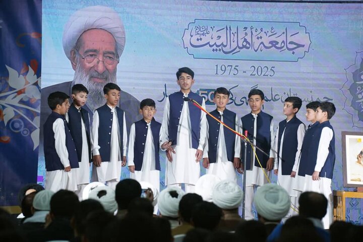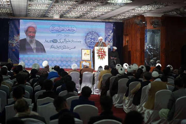 حوزہ/محسن ملّت آیت الله شیخ محسن علی نجفی کی لازوال یادگار ام المدارس جامعہ اہلبیت کے 50 ویں یومِ تاسیس کی مناسبت سے گولڈن جوبلی تقریب، جامعہ کے آڈیٹوریم میں منعقد ہوئی؛ جس میں ملک بھر کے ممتاز علمائے کرام نے شرکت اور محسن ملّت کی علمی و فکری اور سماجی خدمات کو خراجِ تحسین پیش کیا۔